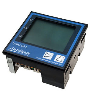 Устройство UMG96 предназначено для измерения и расчета параметров питания, в частности напряжения, тока, мощности, энергии, высших гармоник в домовых электрощитах, обычных и шинных распределителях, а также силовых выключателях. Результаты измерений могут выводиться на дисплей. Их также можно загрузить через интерфейс RS485 для дальнейшей обработки. UMG 96RM обеспечивает непрерывное измерение и рассчитывает все эффективные значения с интервалом в 9 периодов. В ходе измерения должны фиксироваться напряжение и ток одной сети. Входы для измерения напряжения рассчитаны на измерения в низковольтных сетях, в которых действует номинальное напряжение до 300 В на проводе относительно земли и могут возникнуть импульсные напряжения категории перенапряжения III.