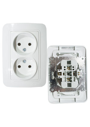 • 70017, Розетка двойная 2 м без заземления  белый встроенный монтаж