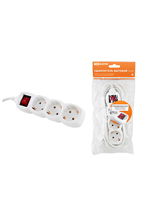 SQ1303-0102, Удлинитель бытовой У03В выключатель, 3 гнезда, 5метров, с заземлением, ПВС 3х1мм2 16А/250В