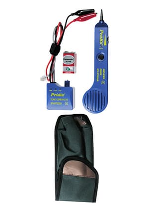 • Тестер сетей с тональным генератором Этот прибор поможет найти скрытую проводку и нужную пару многожильного кабеля, определит полярность телефонной линии Tip/Ring и ее состояние (вызов, свободно, занято). И при этом не надо нарушать изоляцию провода! Устройство состоит из двух блоков: пробника и небольшого тонального генератора. Тональный генератор, формирующий сигнал, имеет два соединительных провода с зажимами (красный и черный) и провод со стандартным телефонным разъемом. Сигнал обнаруживается пробником, который сообщает о результатах измерений посредством светодиодов и звуковых сигналов.