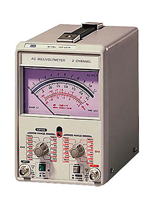 Вольтметры со стрелочным индикатором В 12 диапазонах измерений переменного напряжения от 10 Гц до 1 МГц приборы показывают результаты с точностью (3% в полном диапазоне 300 мкВ - 100 В. Условная шкала дБ позволяет измерять напряжение относительно значения 1 В = 0 дБ в диапазоне -90...+41 дБ. Другая условная шкала, дБм (1 мВт при 600 Ом), предлагает диапазон измерений -90...+43 дБм. С разрешением 1.1 В, такие условные шкалы предназначены для измерений аудио усилителей. Вольтметры имеют внешние выводы (0.1 В в полном диапазоне) для возможности контроля и подсоединения внешней автоматизированной системы.